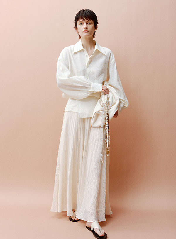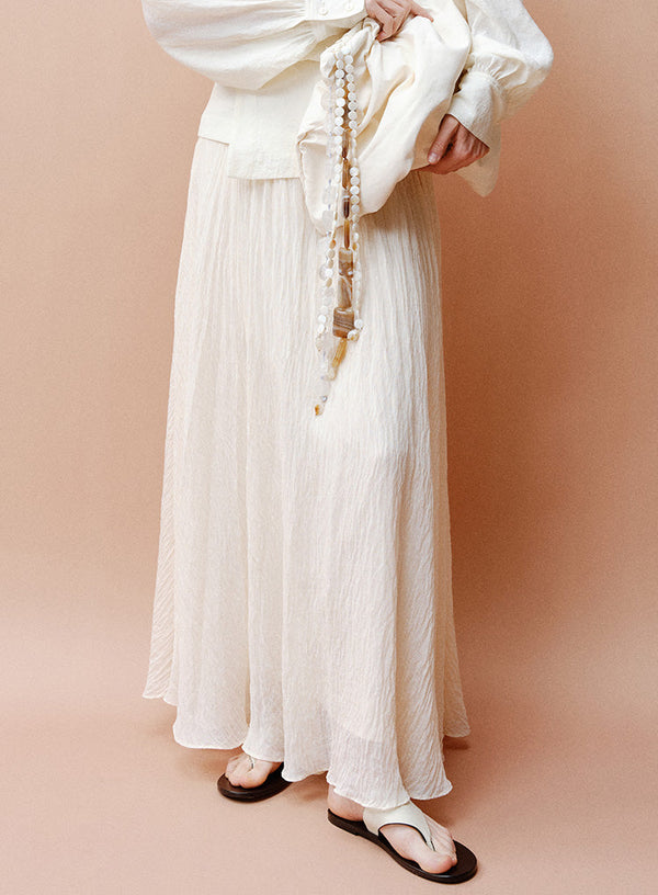 Make a fashion statement with the Pink Beige Apricot High-Waisted Pleated Long Skirt. This skirt embodies elegance and style with its flattering high-waisted silhouette and graceful pleats. Whether attending a special event or enjoying a casual outing, this skirt is the perfect choice for a chic and sophisticated look.