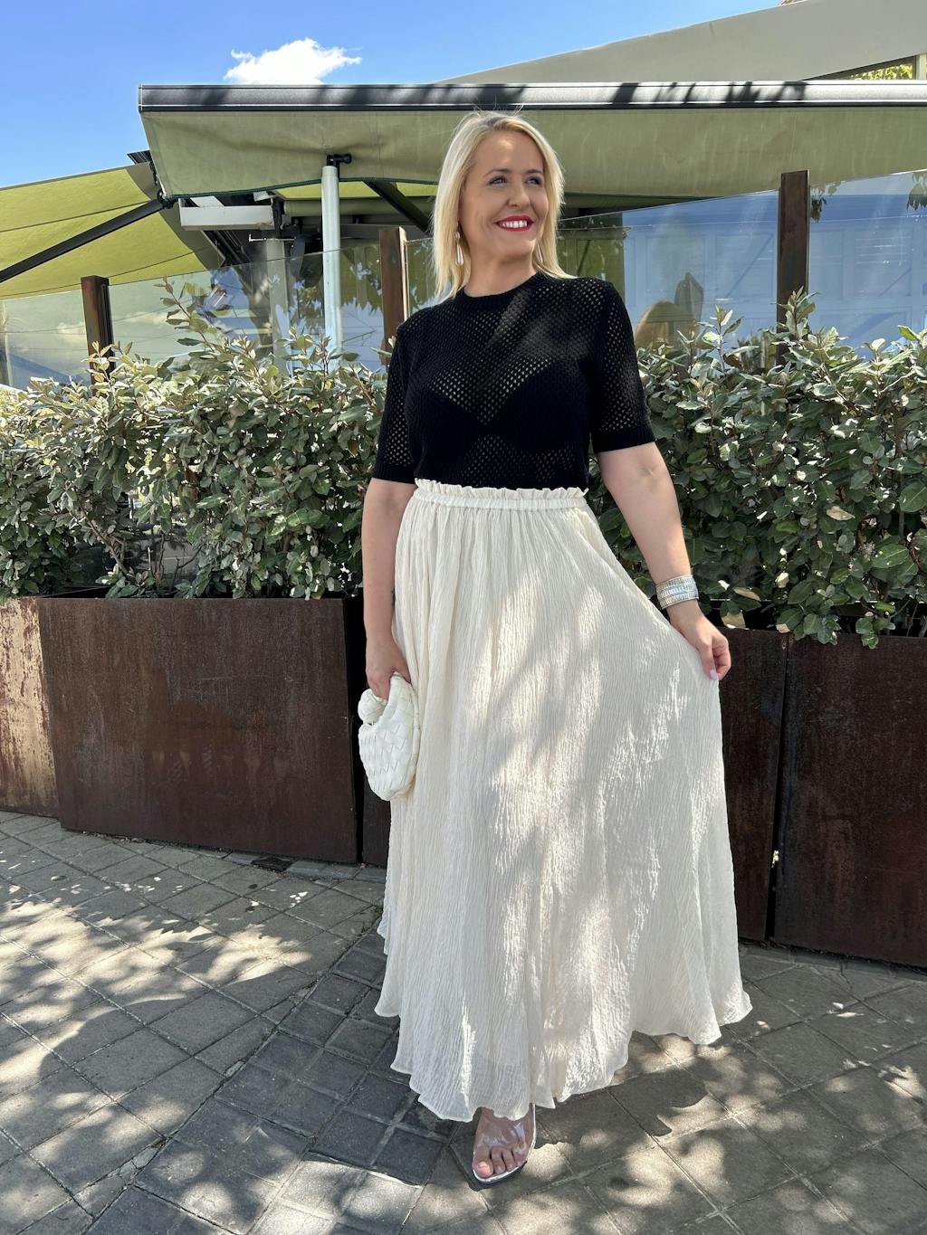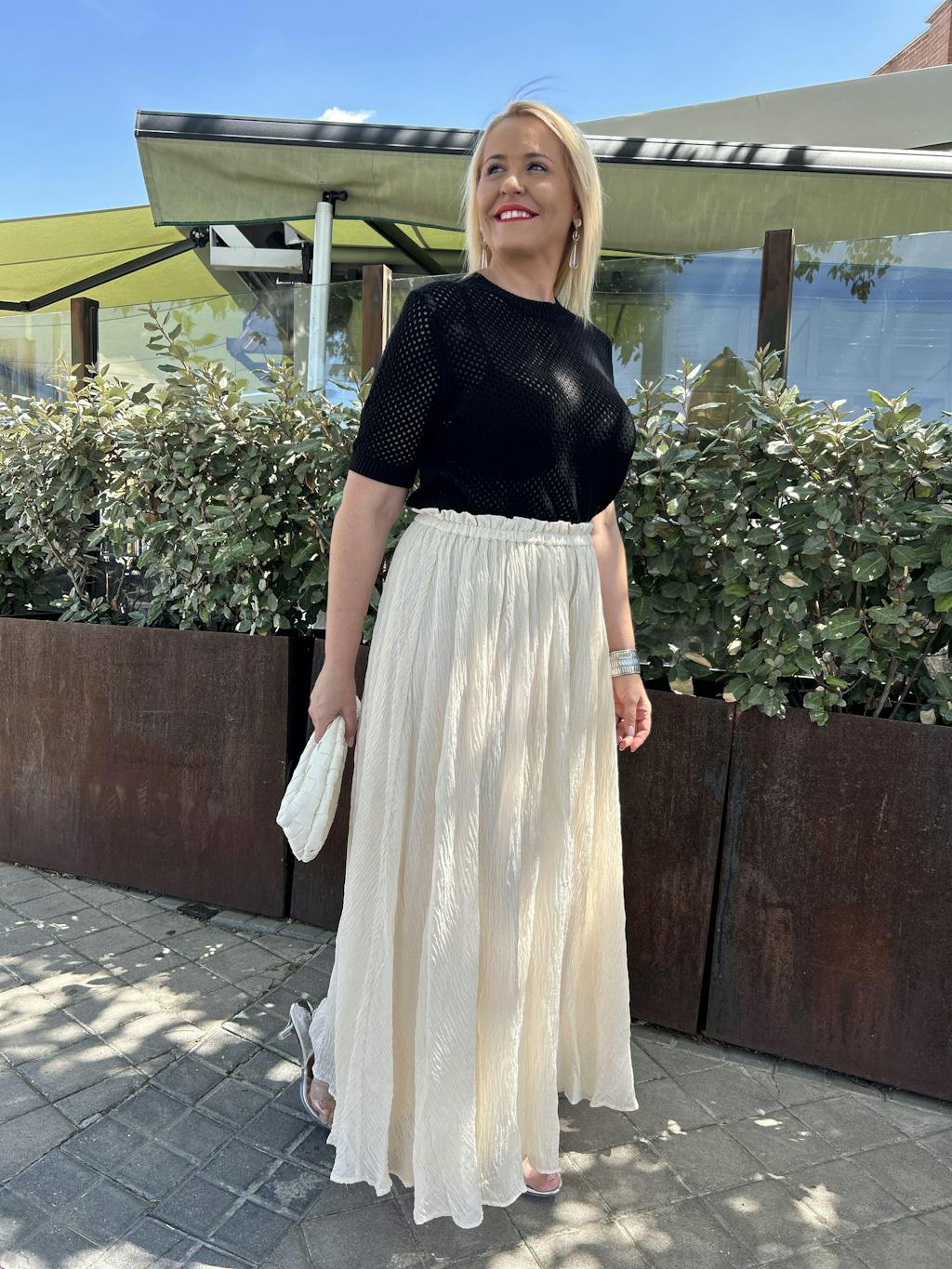 Wearing: The model is 5 feet 10 inches (1.77 meters) tall and wears a size 6 (US) / 38 (EU).