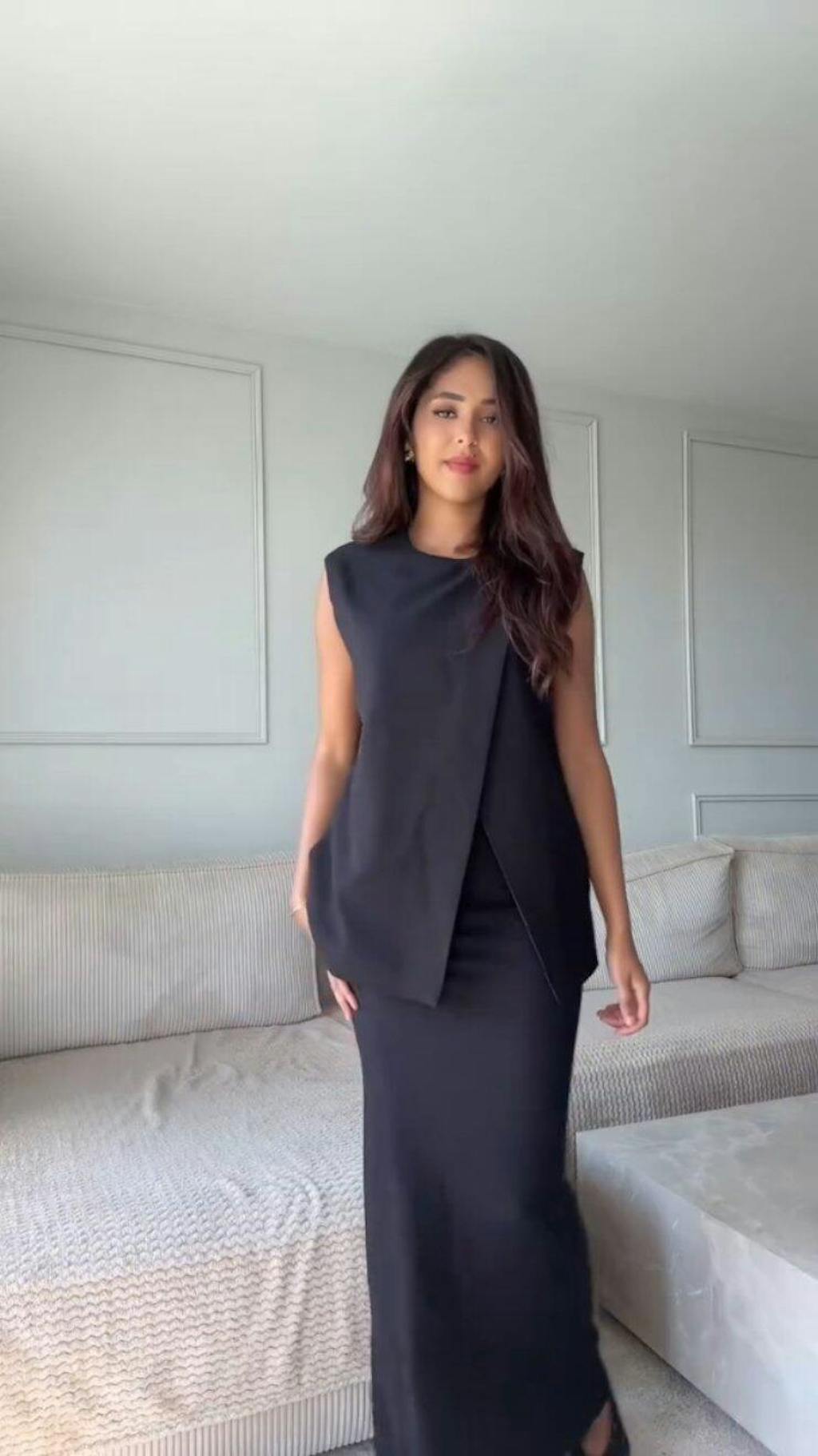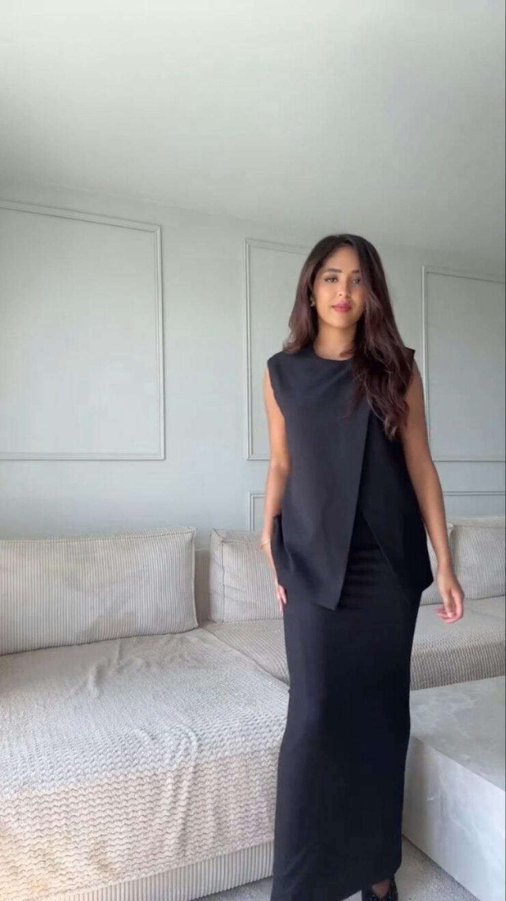 Wearing: The model is 5 feet 10 inches (1.77 meters) tall and wears a size 6 (US) / 38 (EU).