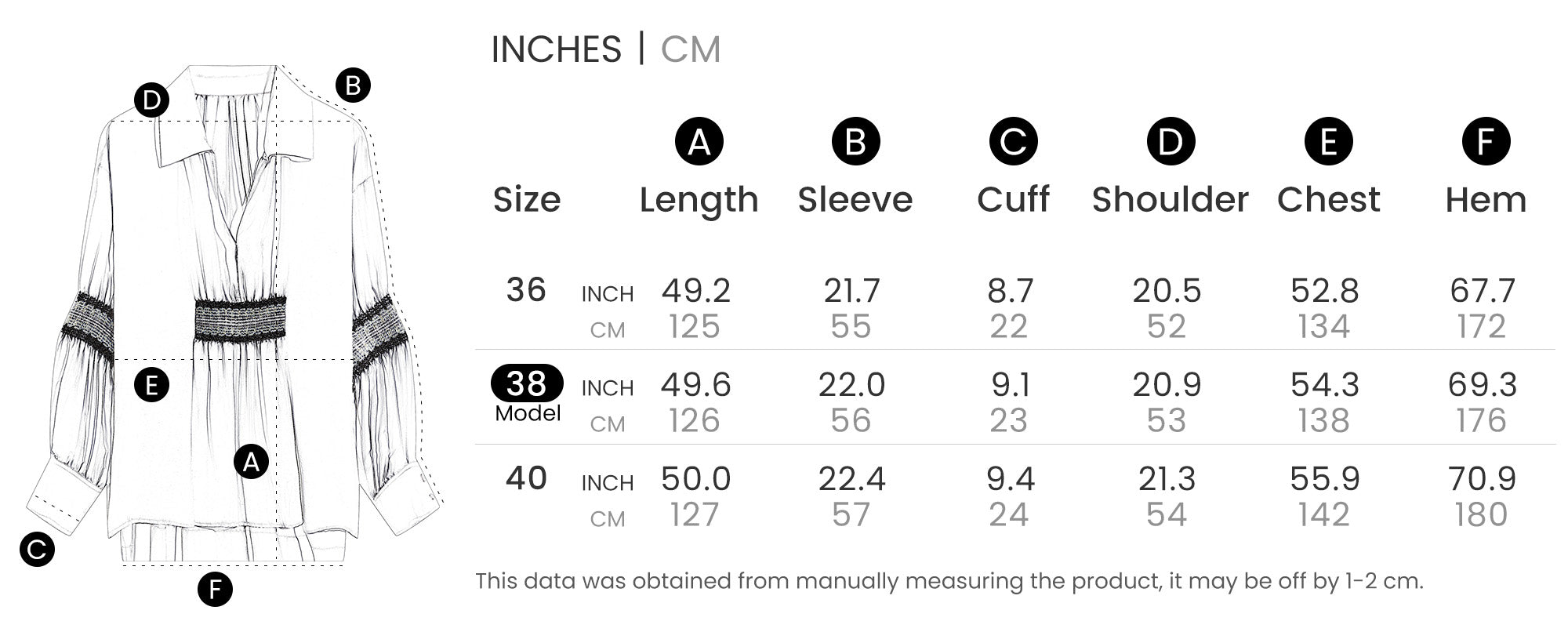 Wearing: The model is 5 feet 10 inches (1.77 meters) tall and wears a size 6 (US) / 38 (EU).