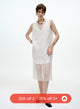 This two-piece set draws inspiration from fishing nets, featuring an outer layer with a knitted mesh pattern that mimics the rippling texture of nets in the waves, while the inner layer uses heat-sealed edges for a sleek, non-bulky fit. The soft cream shade evokes morning sunlight on sand, and the dark coffee tone resembles deep-sea shadows, making it versatile for both work and vacation. As you move, the outer grid sways subtly, revealing the fluid drape of the inner layer for a dynamic, layered effect.