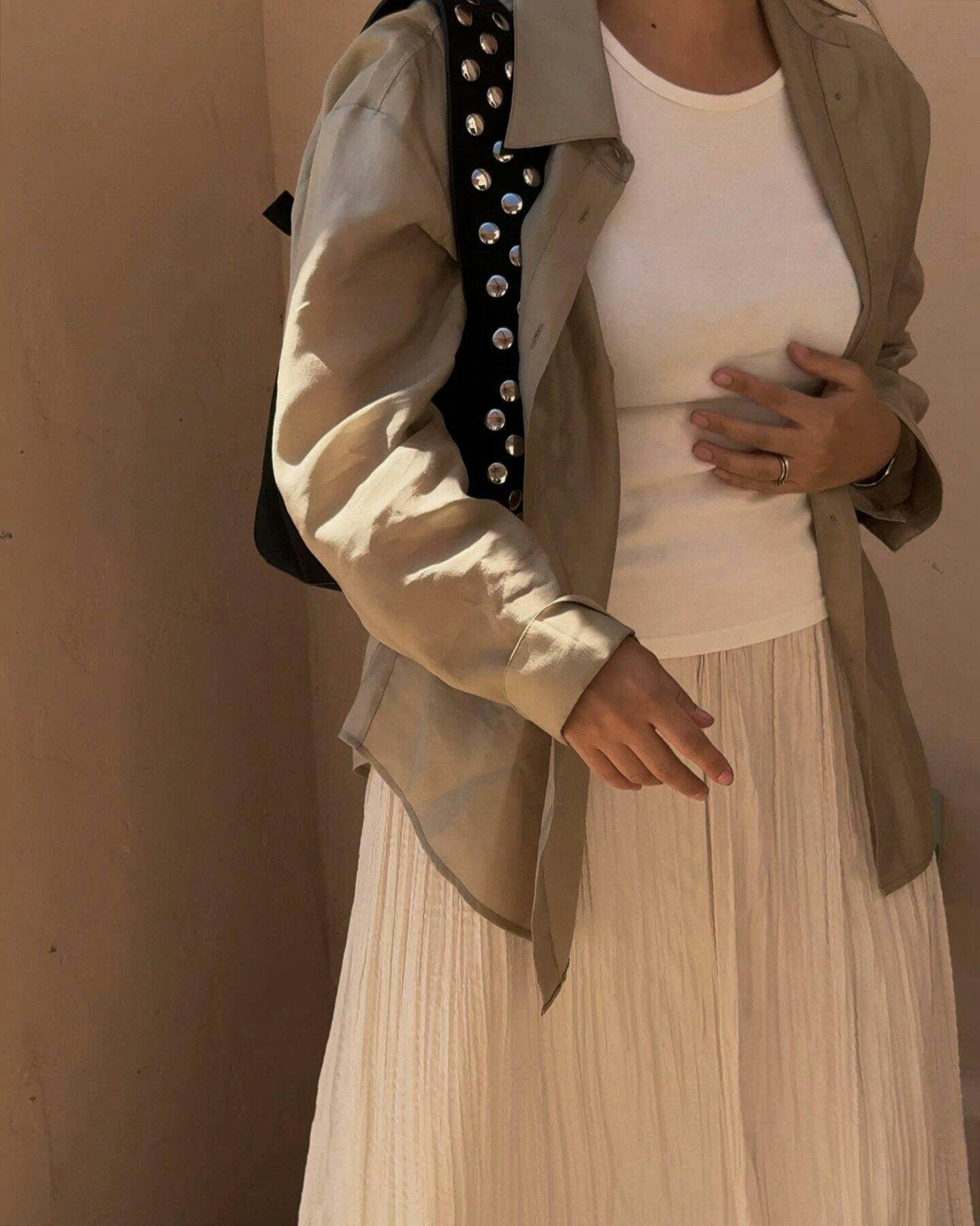 Wearing: The model is 5 feet 10 inches (1.77 meters) tall and wears a size 6 (US) / 38 (EU).