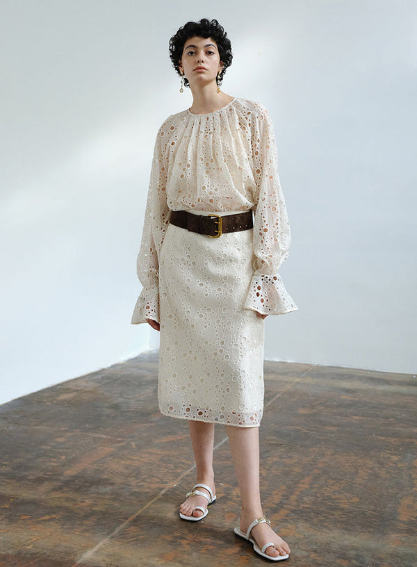 French Embroidered Hollow Flared Sleeve Blouse