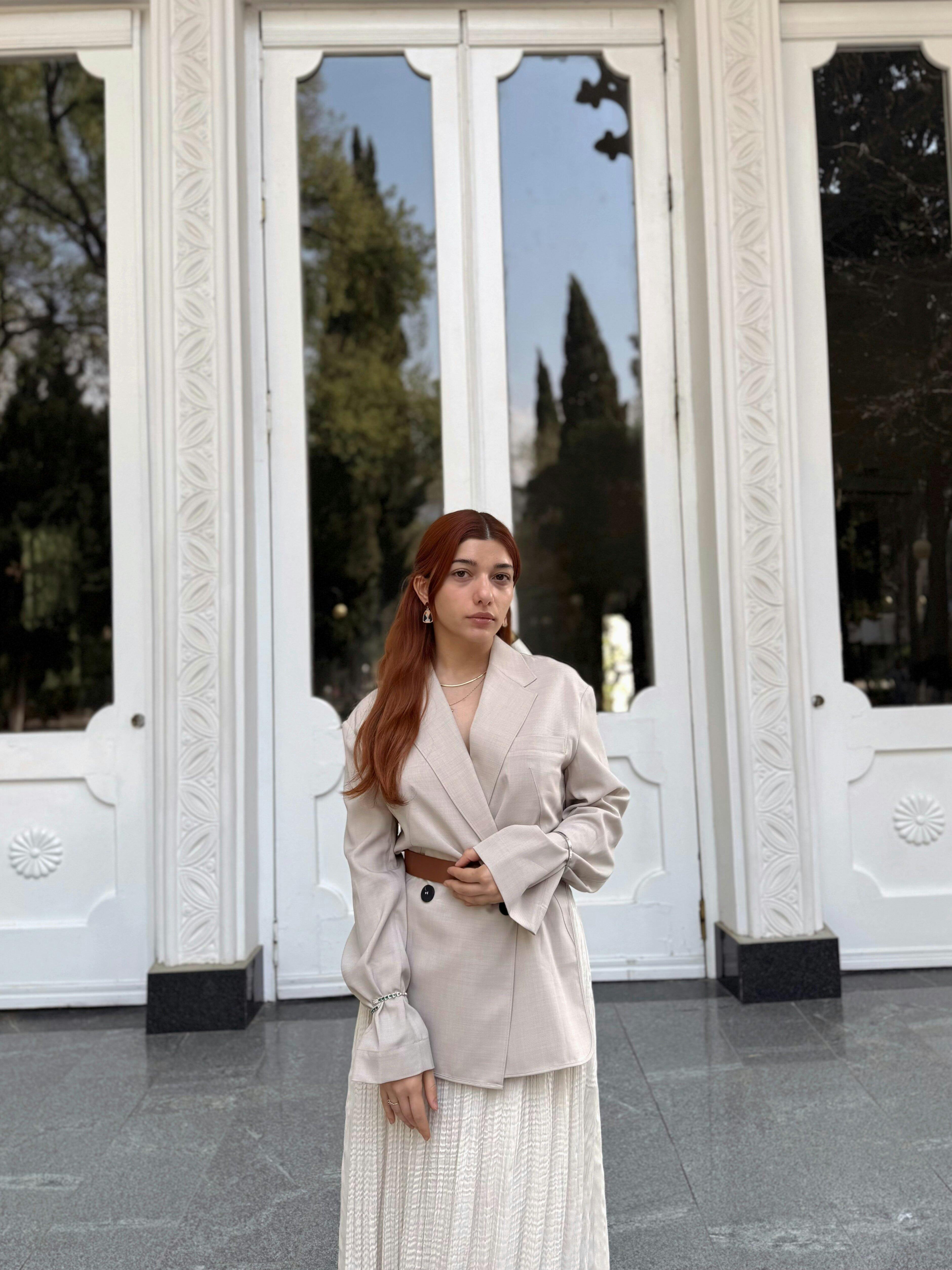 Wearing: The model is 5 feet 10 inches (1.77 meters) tall and wears a size 6 (US) / 38 (EU).