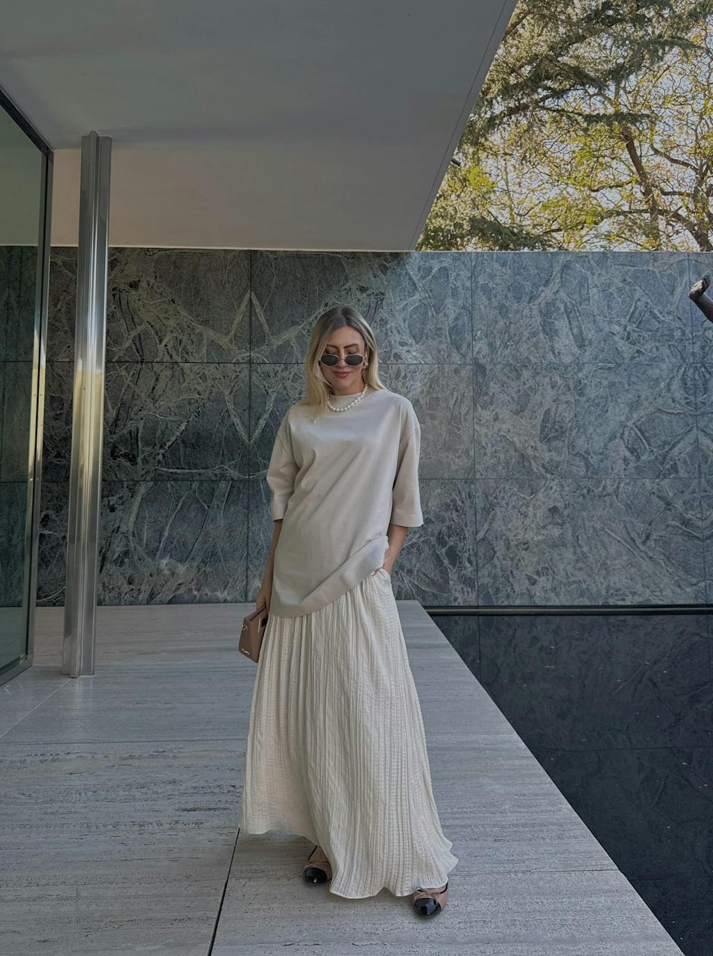 Wearing: The model is 5 feet 10 inches (1.77 meters) tall and wears a size 6 (US) / 38 (EU).