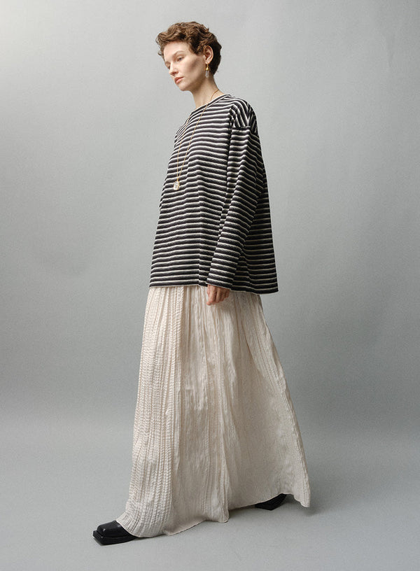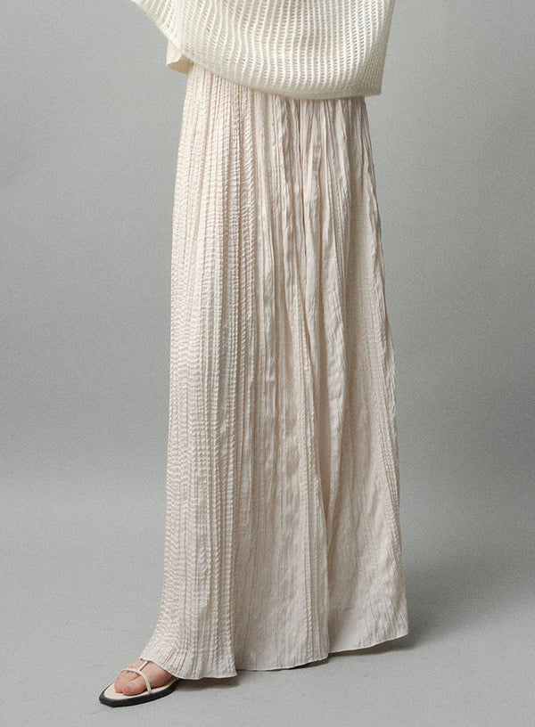The natural irregular pleating effect exudes Victorian elegance. This skirt showcases a sophisticated and timeless design with its pleated texture. The beige color adds a touch of refinement and versatility, allowing for effortless pairing with various tops. Crafted with attention to detail, this skirt embodies grace and style.