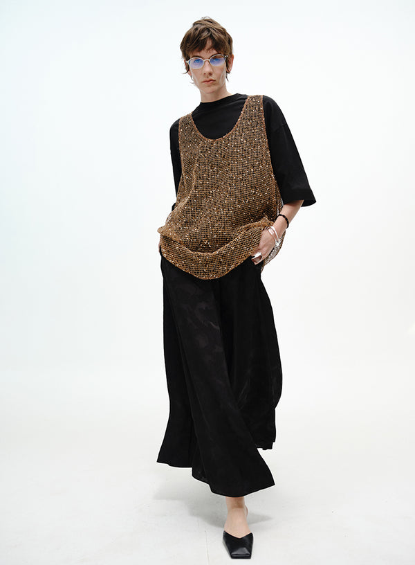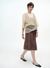 This two-piece set draws inspiration from fishing nets, featuring an outer layer with a knitted mesh pattern that mimics the rippling texture of nets in the waves, while the inner layer uses heat-sealed edges for a sleek, non-bulky fit. The soft cream shade evokes morning sunlight on sand, and the dark coffee tone resembles deep-sea shadows, making it versatile for both work and vacation. As you move, the outer grid sways subtly, revealing the fluid drape of the inner layer for a dynamic, layered effect.