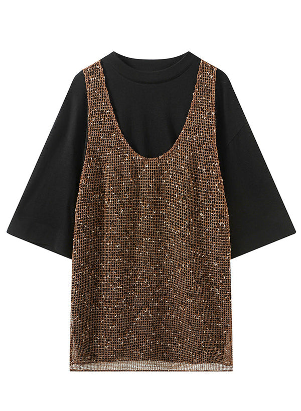 Material: Tank top: 95% polyester, 5% spandex; T-shirt: 73% cotton, 27% viscose