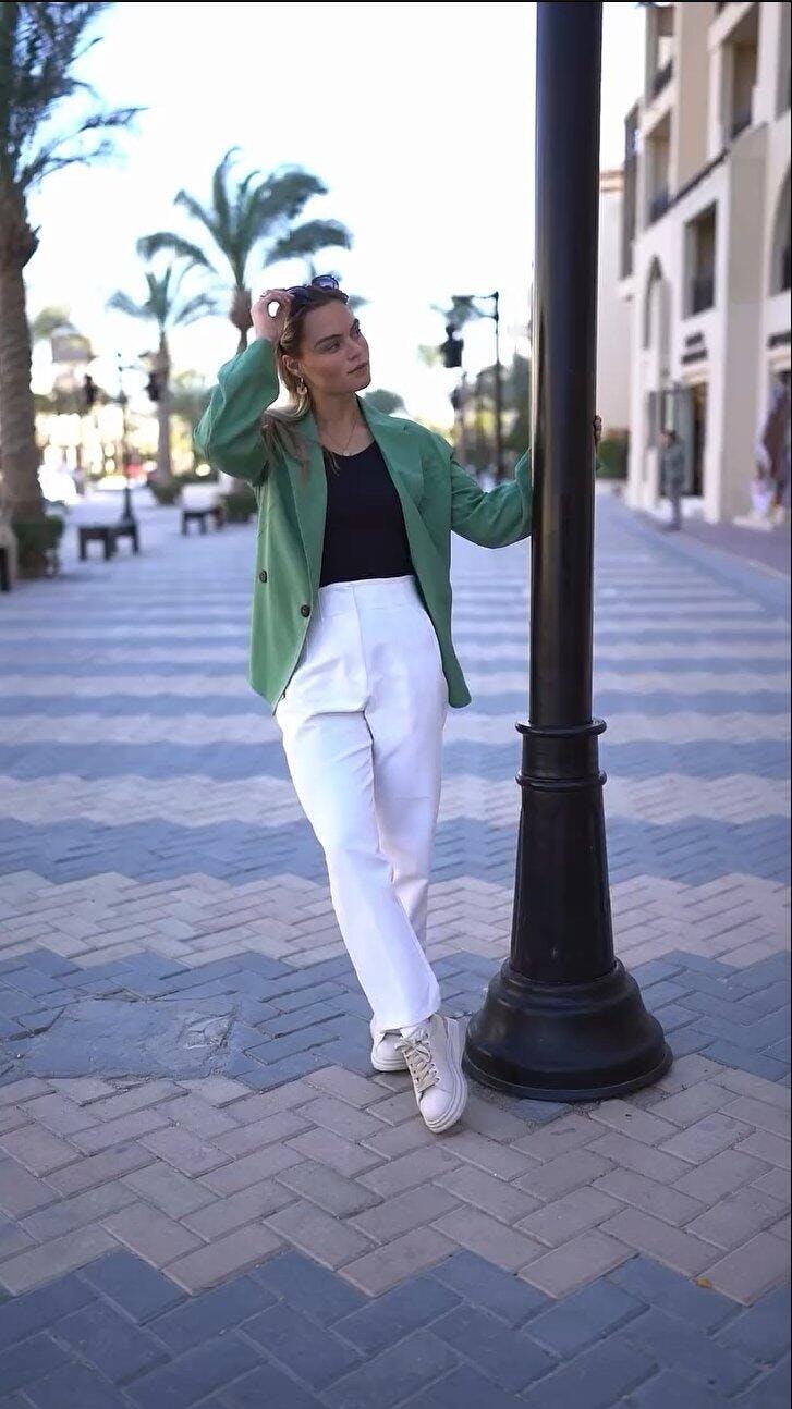 Wearing: The model is 5 feet 10 inches (1.77 meters) tall and wears a size 6 (US) / 38 (EU).
