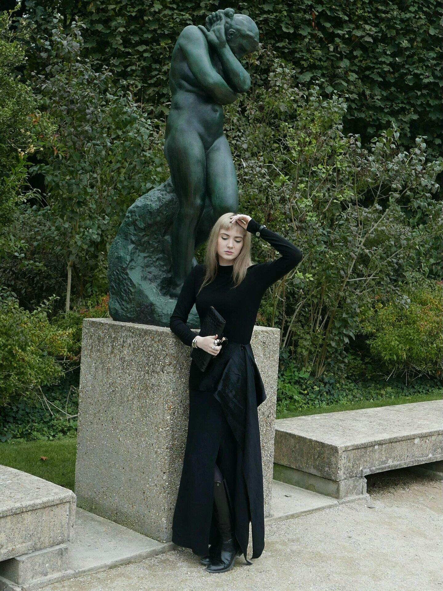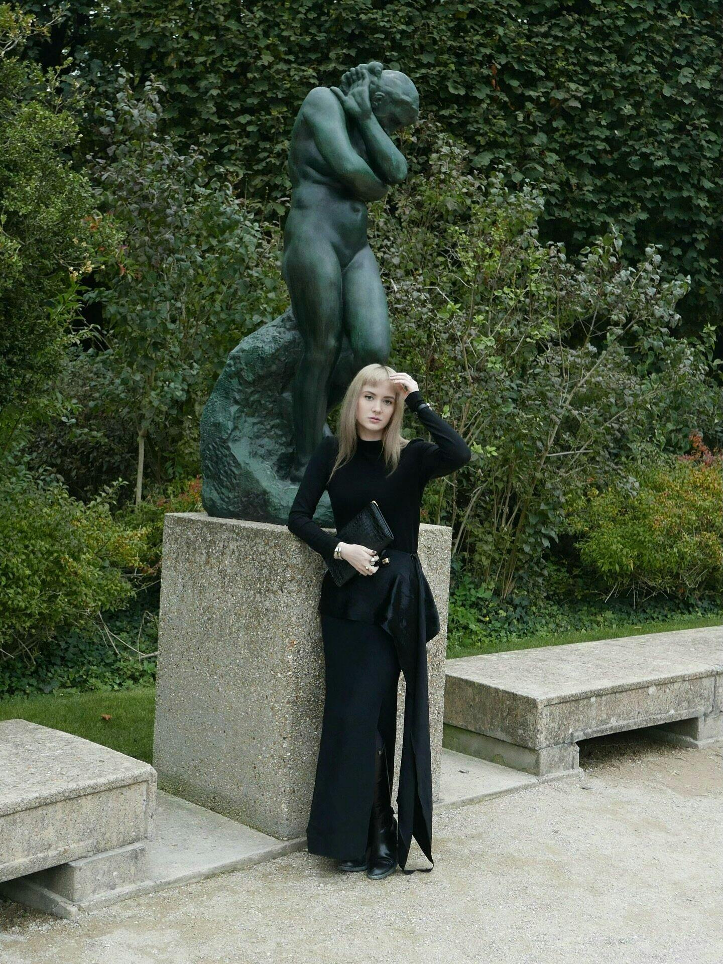 Iført: Modellen er 5 fod 10 tommer (1,77 meter) høj og bærer en størrelse 6 (US) / 38 (EU).