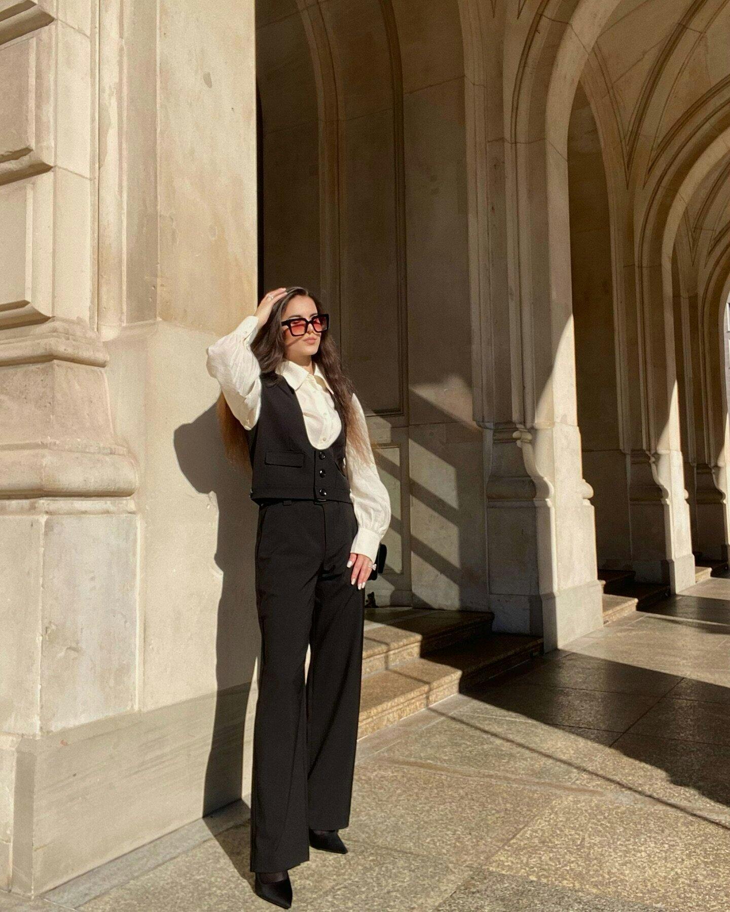 Disse klassiske lige brede benbukser er en garderobe, der er vigtig for den arbejdende kvinde. Lavet af et jakkesæt af høj kvalitet, perfekt til kontoret eller pendling. Den lige silhuet med brede ben er universelt flatterende og skaber et langstrakt, strømlinet udseende. Disse alsidige bukser kan pyntes op med en bluse og hæle til et formelt møde eller parres med en simpel t-shirt og loafers for et mere afslappet look, der er klar til arbejdet.