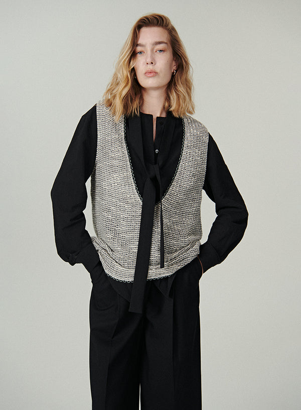 Material: 46% Polyester, 21% Acrylic, 15% Cotton, 11.9% Recycled Cellulose Fiber, 3% Polyamide, 1.4% Wool, 1.2% Spandex, 0.5% Metallic Polyester Fiber.